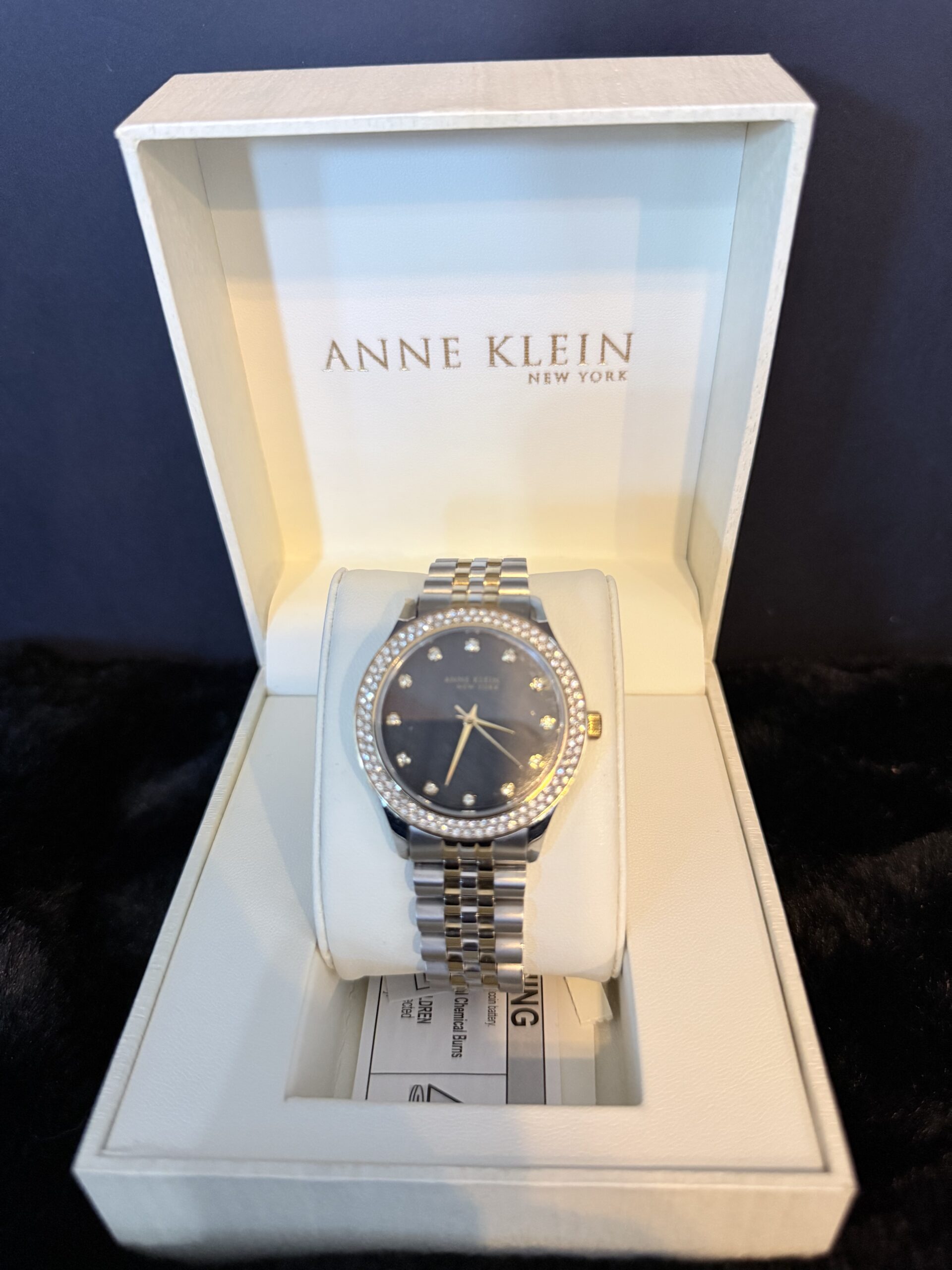 Anne Klein 12/7743BMTT Ladies Black MOP Diamond Dial Watch