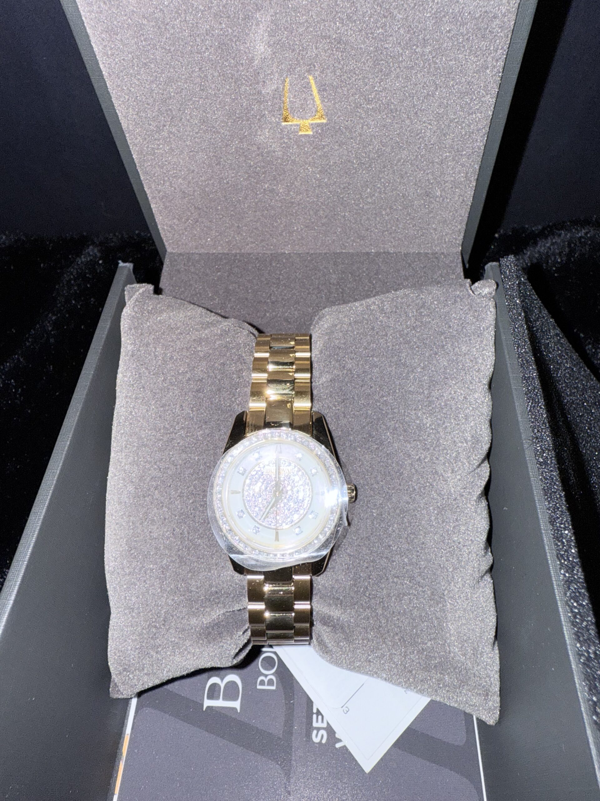 Bulova 98L315 Classic Gold Tone SS Crystal Ladies Watch 98L315